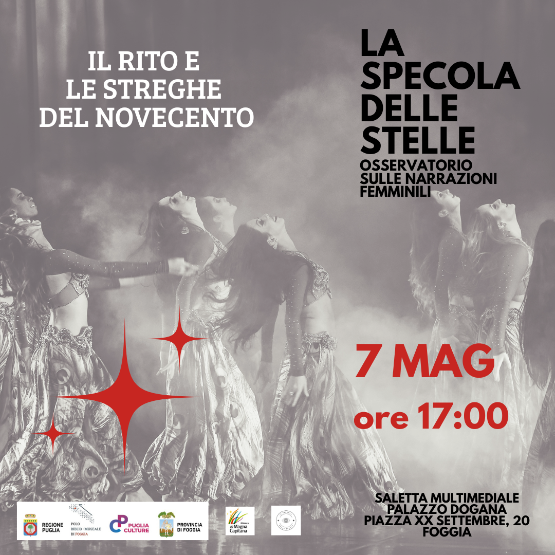 Il prossimo giovedì 7 maggio alle ore 17:00, presso Palazzo Dogana (P.zza XX Settembre) si terrà l’incontro dal titolo “l rito e le streghe del Novecento, nell’ambito della Specola delle Stelle: progetto di lettura e approfondimento dedicato all’esplorazione della letteratura al femminile, in collaborazione con la casa editrice Le Flâneurs.