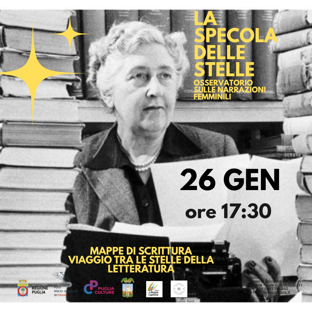 Lunedì 26 gennaio alle ore 17.30, la Specola dedica un incontro ad Agatha Christie, nel giorno in cui ricorre l'anniversario della sua scomparsa.