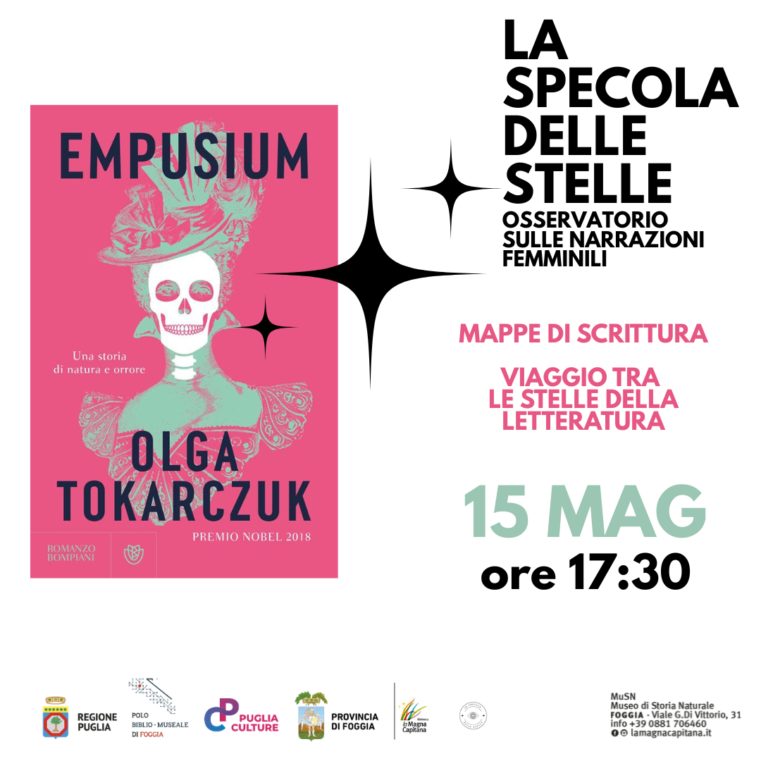Protagonista dell’appuntamento sarà il romanzo Empusium di Olga Tokarczuk, nell’ambito del progetto di lettura Mappe di scrittura: viaggio tra le Stelle della letteratura.
